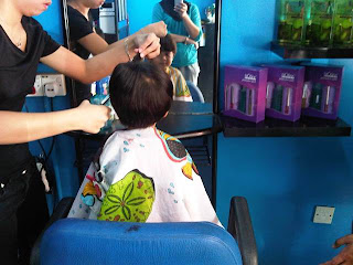 actually nothing special..but this is first time Hasya went to saloon to cut her hair..( she requested long time ago ) but i scared she will run away...hahaha...but she's not crying !!! pelik sungguh...so after this no worries if we want to cut her hair...just send her to saloon..sure settle..